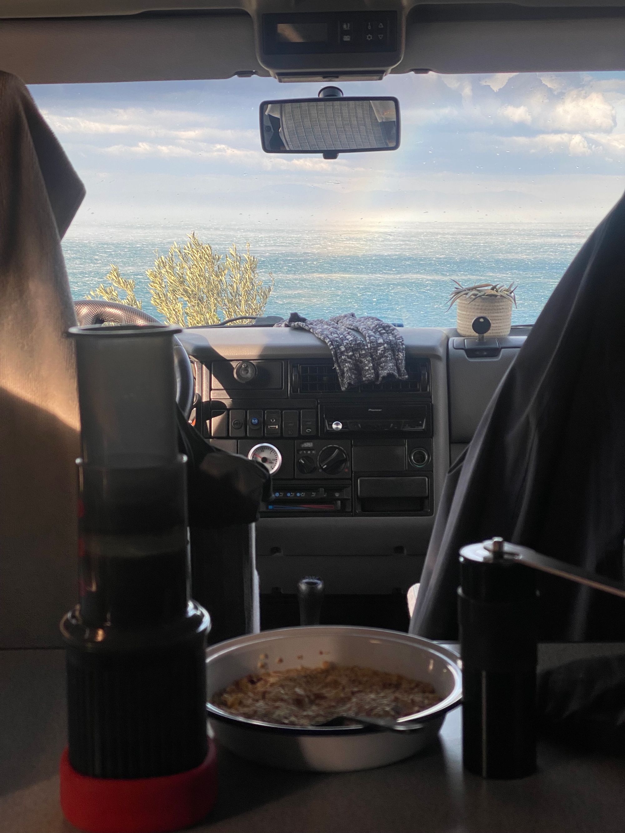 A few days later I arrived in Croatia, via a slither of Slovenia. The border guard stamped my passport, raised her eyebrows and said “be careful”. She might have meant “be careful of starvation”, because that evening I couldn’t find an open shop, never mind restaurant. After driving up and down one section of road, past countless boarded up campsites, I found one, unbarricaded, but under construction, and swung the van into the building site, dodging equipment and materials. I backed into a space well out of sight from the main road. The camper van smartphone apps all warned of gangs of men pretending to be police, extorting cash from campers using fake ID and threats of violence. I couldn’t settle. It was still early, I was hungry, and eventually, after spending hours on the Internet looking for another place to sleep, I stumbled upon the campsite owner. A few messages later and he knocked my window, took my Euros for a few nights camping, promised the shower in the shed would warm up “soon”, and recommended a restaurant a few kms along the coast.